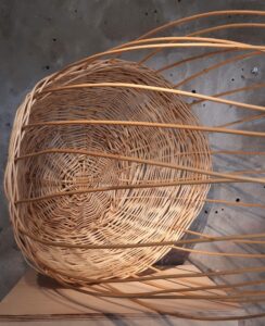 Naast tweedimensionale representaties vervaardigt zij ook driedimensionale maskers van papier-maché en textiel. Tijdens de residency bij SYB is Carmen een extra materiaal en techniek gaan verkennen, het wilgen vlechten. Bij het leren van dit ambacht kon zij niet steunen op de kennis van haar handen, maar wel op de begeleiding van de ervaren vlechter Jannie Hakman. Er kwam veel bij kijken: naast het voorbereiden van de wilgentenen (weken in water), het bewerken van de tenen (verschillende vlechttechnieken) en het gebruik van gereedschap, speelt ook tijd een belangrijke rol. Het vlechten van bijvoorbeeld een mand of een decoratief vlechtwerk, zoals een masker, moet afgerond worden terwijl de wilgentenen nog nat zijn. Carmen is de uitdaging aangegaan om in versnelling een ambacht te leren en zich deze op zo een manier eigen te maken dat ze de geleerde technieken kan inzetten om maskers te creëren. Het ambacht van het vlechten is op meerdere vlakken met haar onderzoek naar grotesken verbonden. Niet alleen in de voltooide maskers, maar ook in de symmetrie en de verweven opeenstapelingen van zowel de ornamentvorm als ook het wilgen vlechten. Daarnaast is Carmen een opmerkelijke visuele connectie tussen de wilgentakken en de grotesken in de lokale omgeving tegengekomen: vroeg twintigste-eeuwse Friese grafstenen zijn met symmetrische wilgentakken gedecoreerd.
