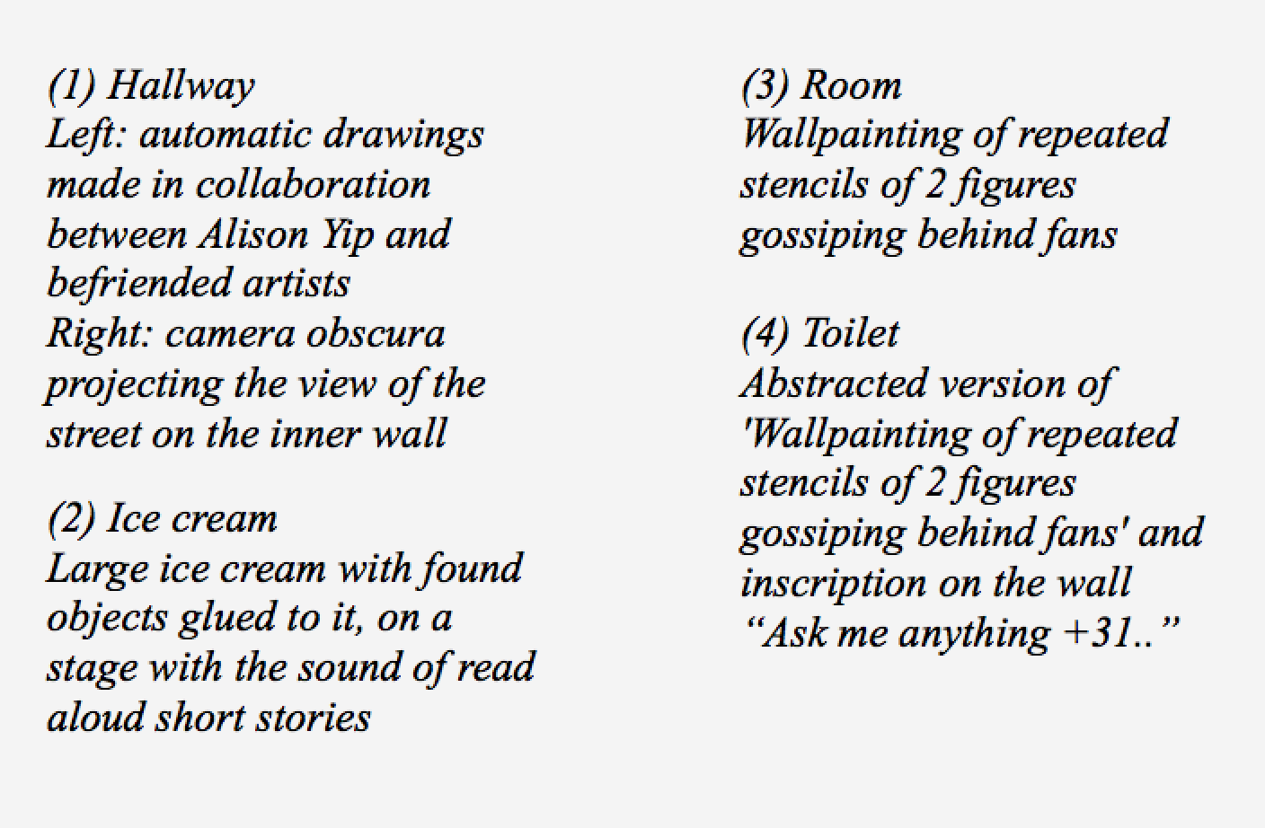 In ‘Enough Rumours to Swing A Cat’ visual artist Alison Yip rewrites small town stories into absurd anecdotes and wallpaintings. She spent one month introducing local Frysian histories to Kunsthuis SYB by talking to neighbours, drawing up patterns and transscribing tales. Gossip is known for growing in its notoriety by losing truthful detail as it gets passed along. In the process, vacuums give way to all sorts of phantasms. […]